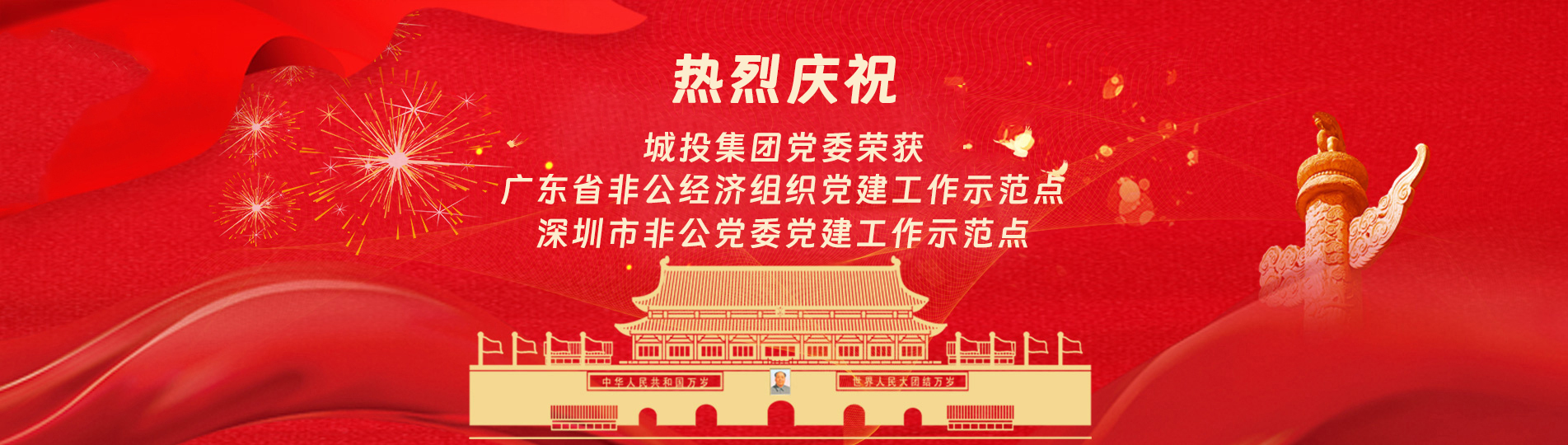 在上級黨委的正確領導下,在城投集團的大力支持下,集團黨委緊緊圍繞企業發展戰略,將黨建引領核心貫穿始終,以五心工程(即思政建設核心工程、經營發展中心工程、企業文化向心工程、黨建品牌匠心工程、服務基層愛心工程)為抓手,大膽探索,勇于突破和創新,不斷形成城投黨建特色,有效輸出城投實踐經驗,充分發揮紅色引擎作用,先后獲得深圳市非公黨委黨建工作示范點深圳市兩新組織黨建工作示范點、深圳市文明單位、深圳市先進基層黨組織廣東省非公有制經濟領域黨建工作示范點等榮譽稱號。